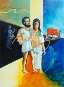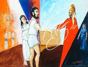 (Y611) Jason Gives a Shocked Pelias the Fleece 91 x 121 cm $400